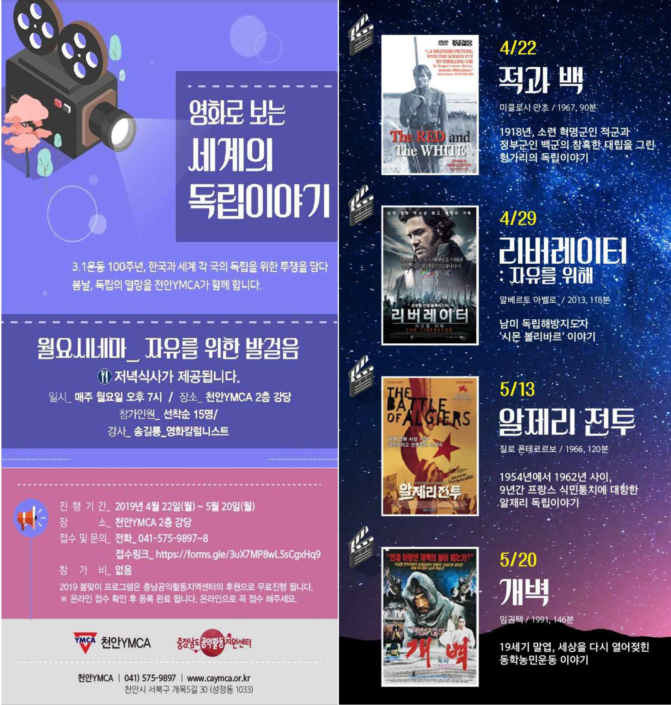 2019 봄 월요시네마는 '영화로 보는 세계의 독립이야기' 라는 테마로