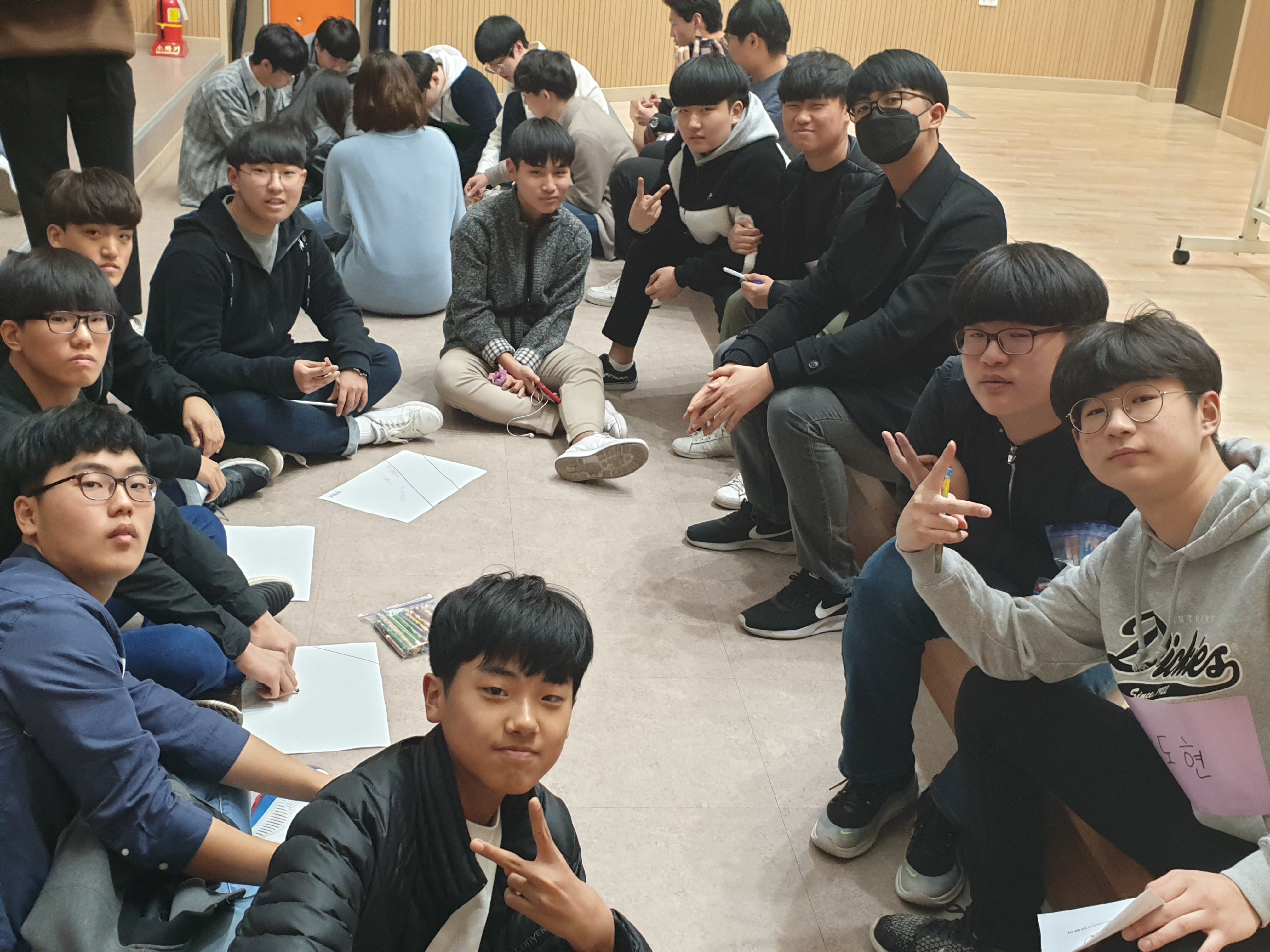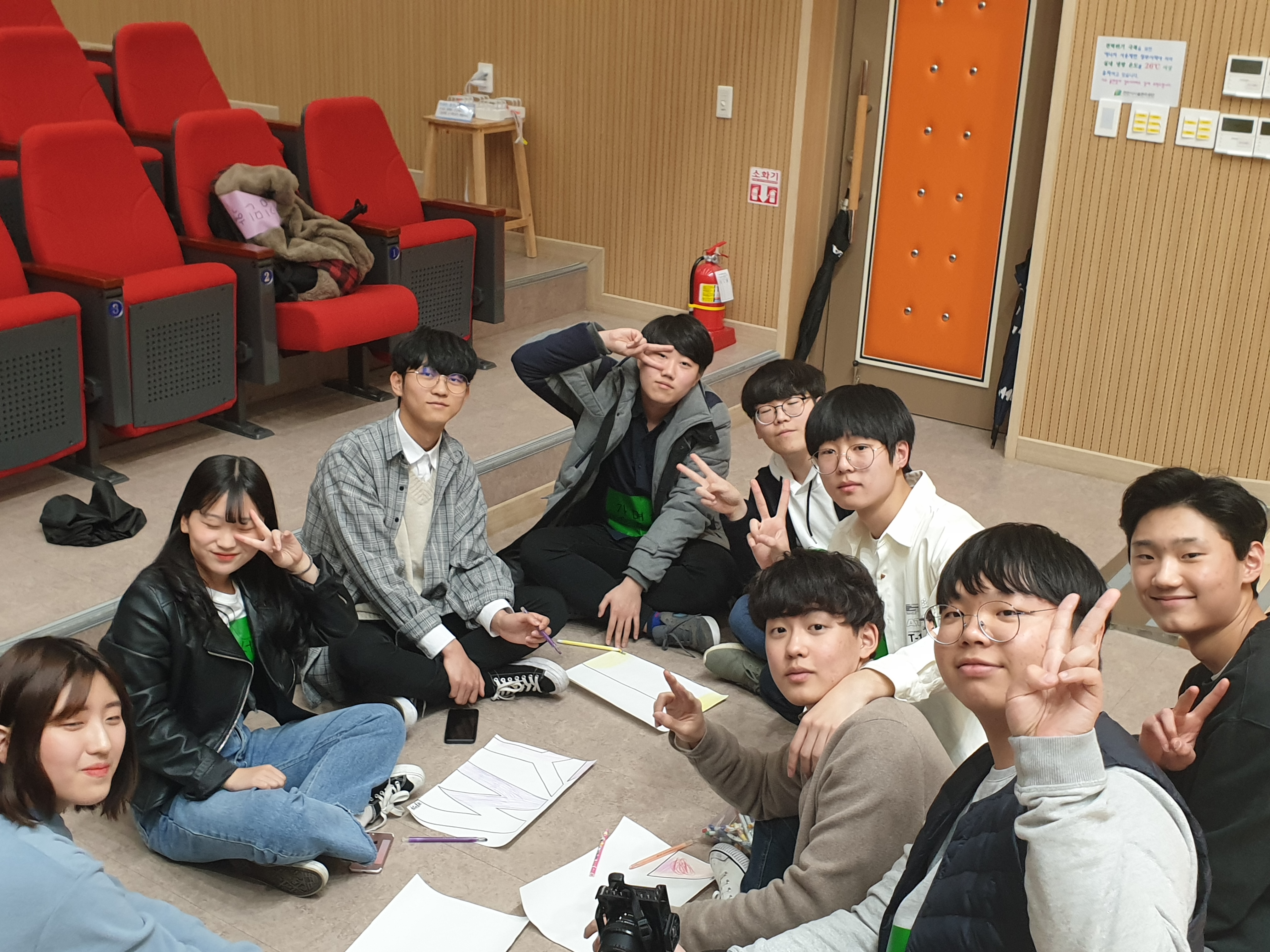 개봉박두 동아리 친구들이 모여 열심히 브이를 그려주고 있습니다!