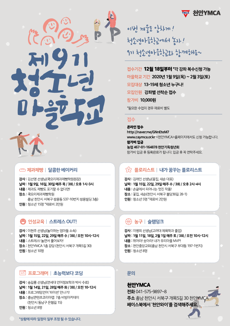 이번 겨울도 알차게! 청소년마을학교에서 놀자! ‘9기 청소년마을학교’와 함께해요~