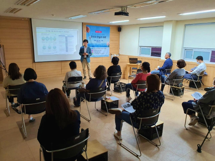 [포스트 코로나 시대, 우리의 현실과 미래] 그 두 번째 대화모임인 "코로나19와 기후위기 시대"을 5월 27일(수) 저녁7시 천안YMCA 1층 강당에서 진행했습니다. 에너지기후정책 연구소 한재각 소장님과과 함께하는 시간이었는데요.