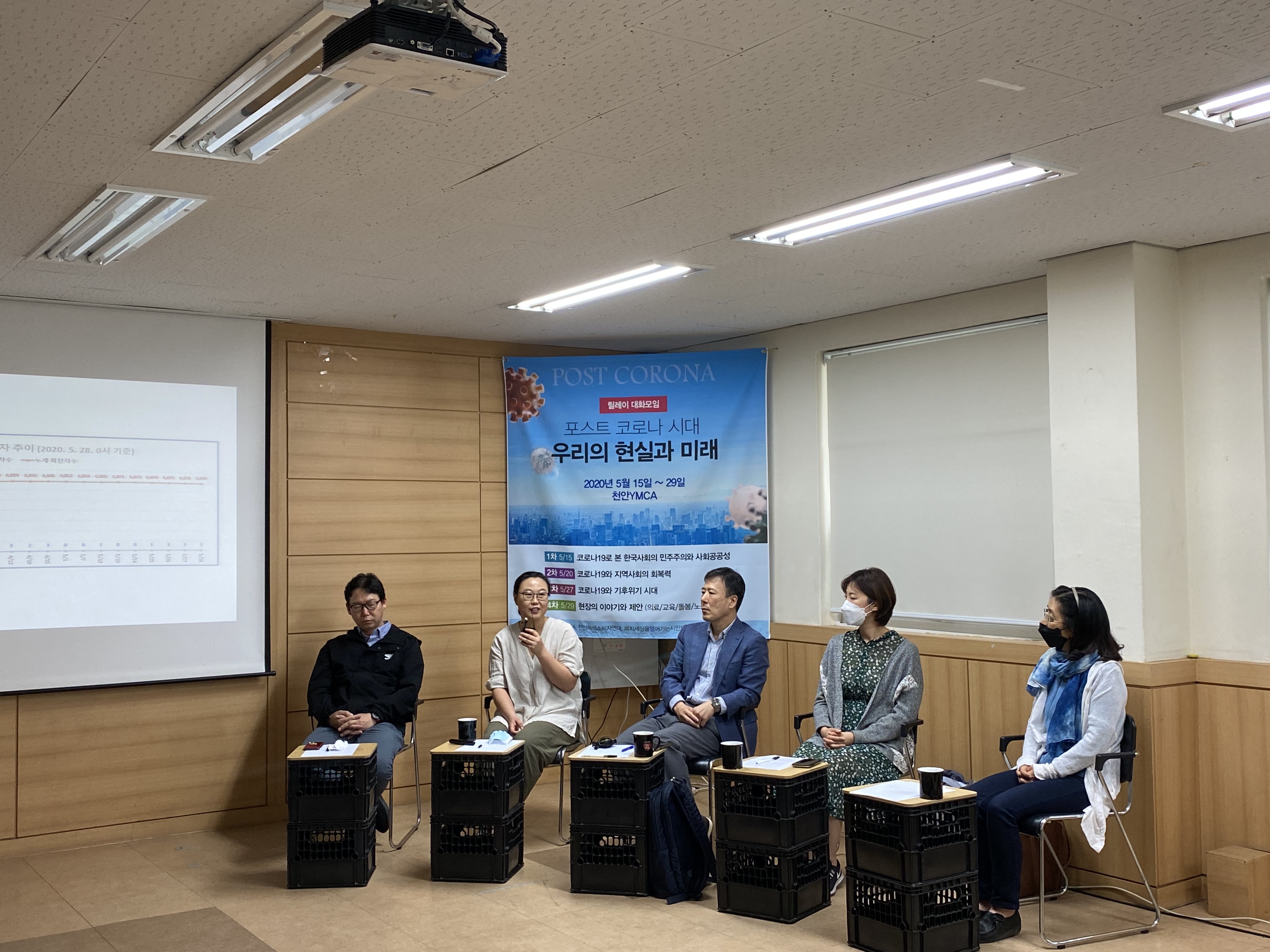 포스트코로나 릴레이대화모임 네 번째 모임이 지난 5월29일(금) 오후3시부터 천안YMCA 1층 강당에서 진행됐습니다. 이날 모임은 박성호(전국민주시민교육네트워크 공동운영위원장)님의 사회로 노동, 의료, 교육, 돌봄 등 코로나19의 피해가 두드러졌던 영역들에서 겪고, 경험한 현장의 이야기를 나눴습니다.