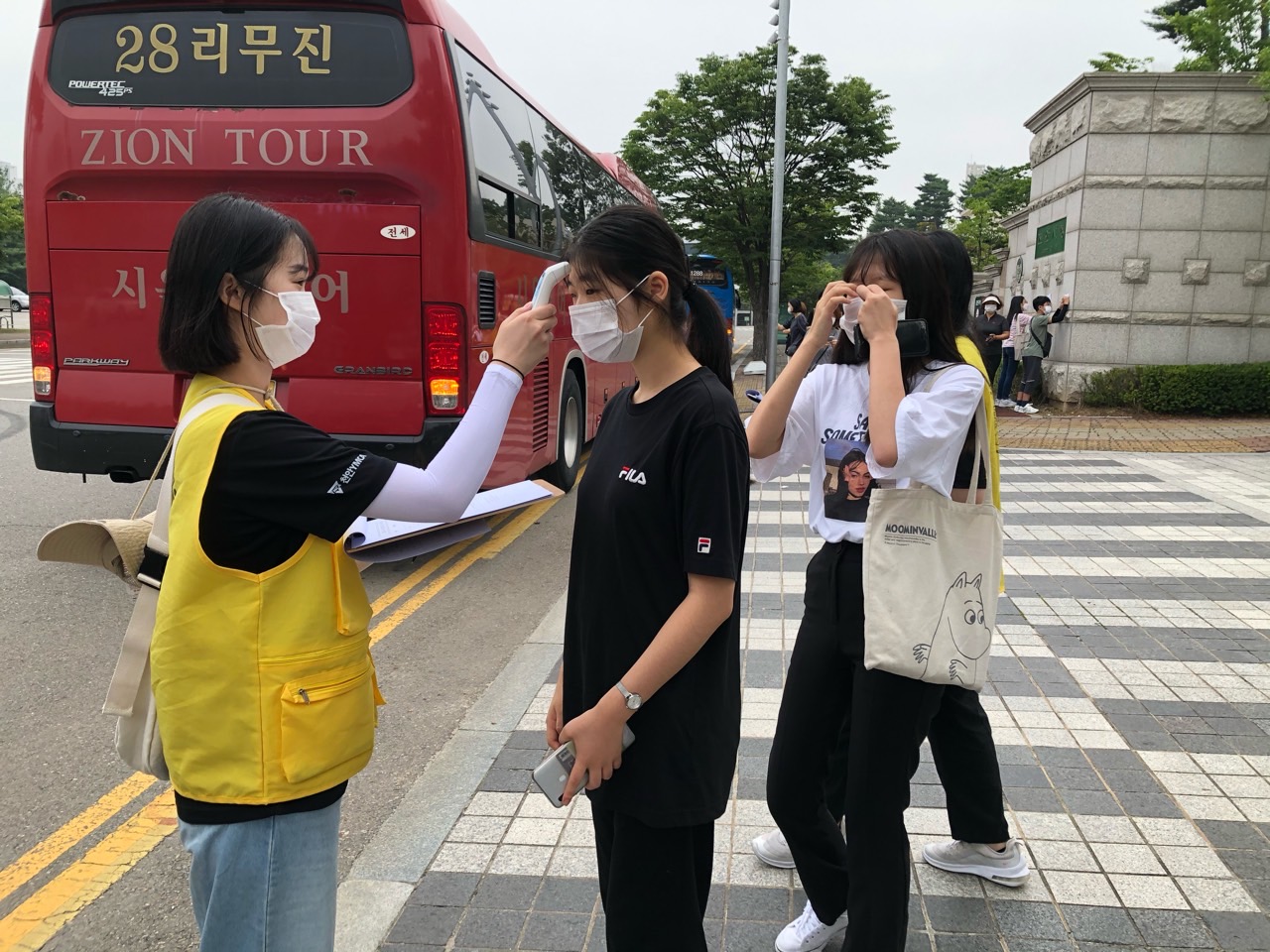 그에 따른 프로그램 전인원 발열체크와 문진표 작성 및 손소독 후