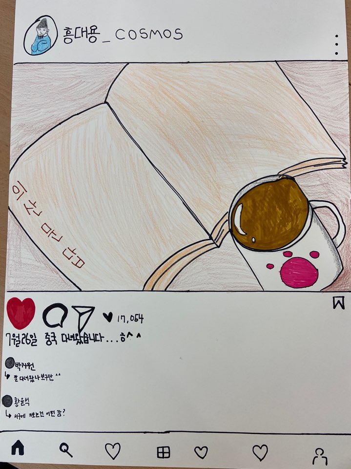 자유로운 방법으로 홍대용을 나타내보는 시간이였습니다.