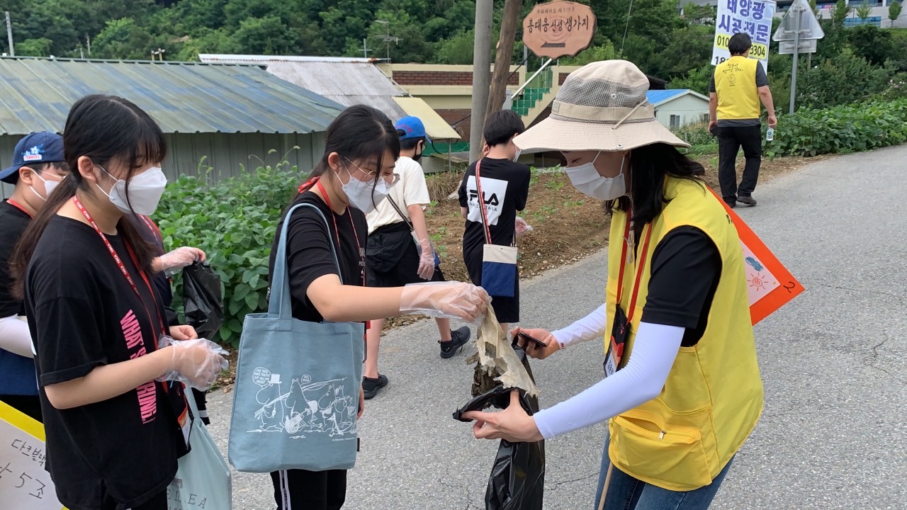 홍대용 생가지를 출발하기 전에 환경정화활동을 위한 준비를 한 후 이동하며 마을에있는 쓰레기를 줍는 환경정화활동이 진행되었습니다.