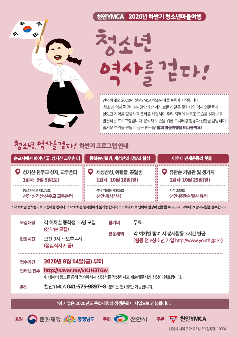 2020년 천안YMCA 청소년마을여행 '청소년 역사를 걷다!' 하반기 참가신청