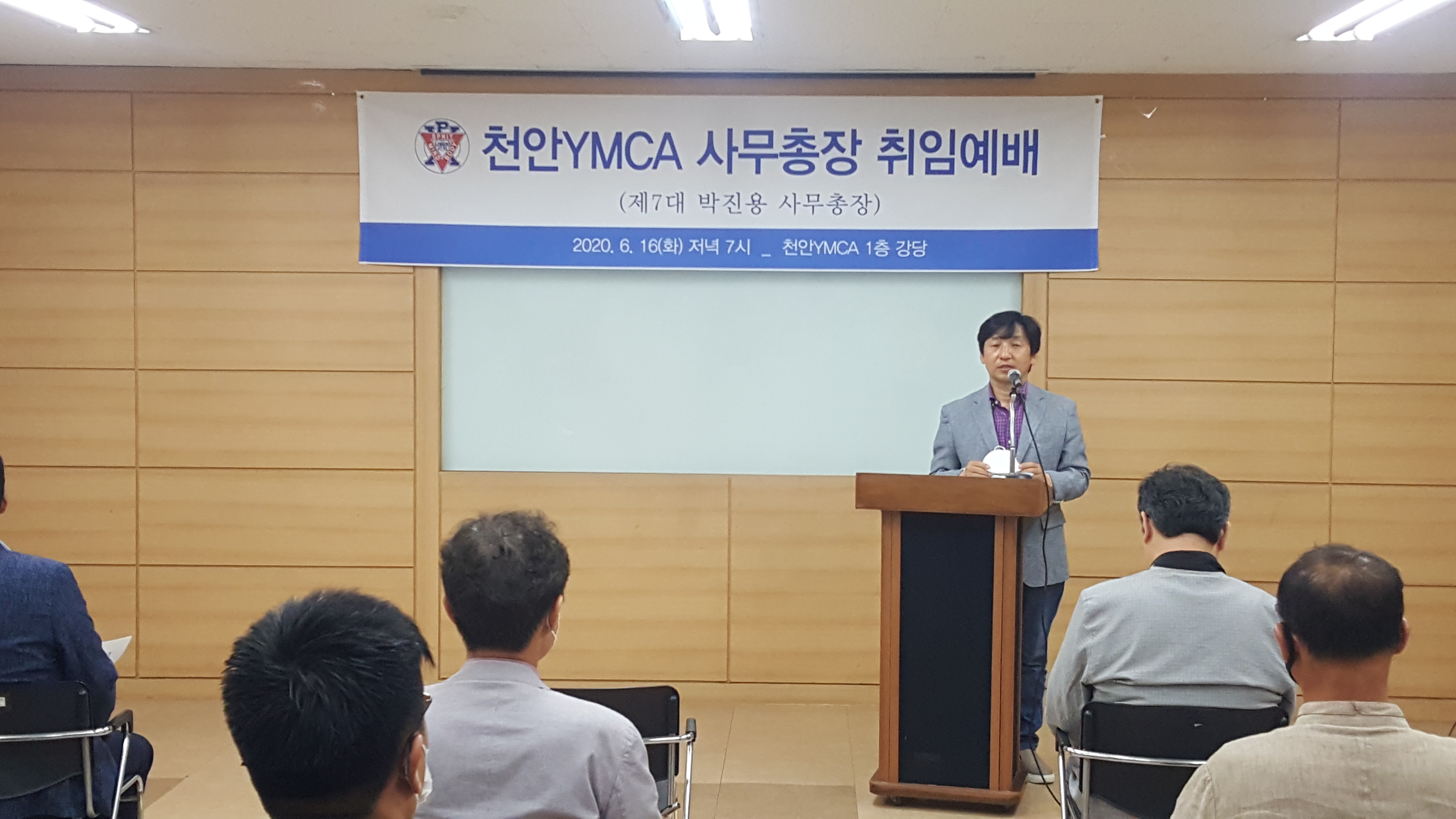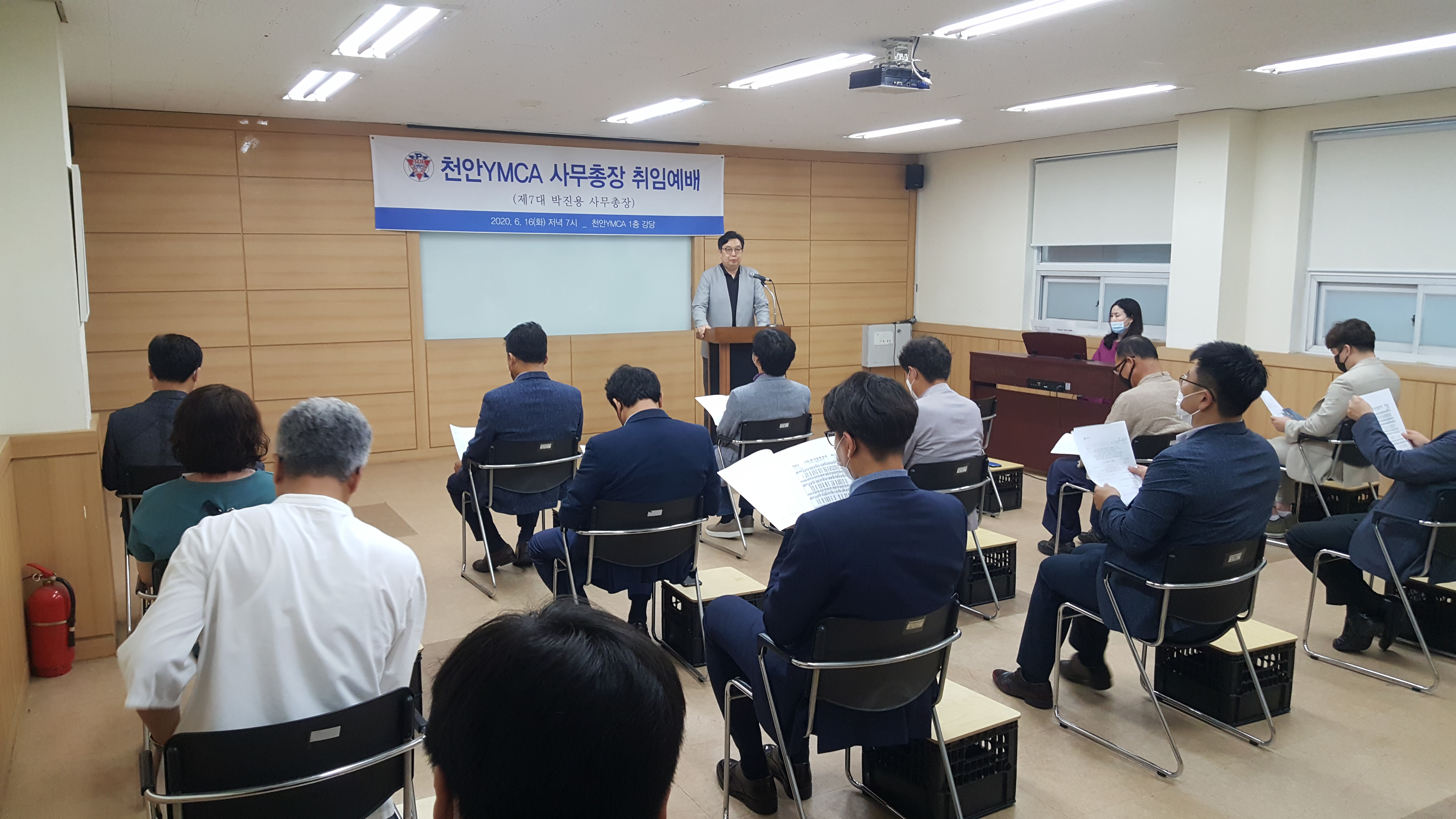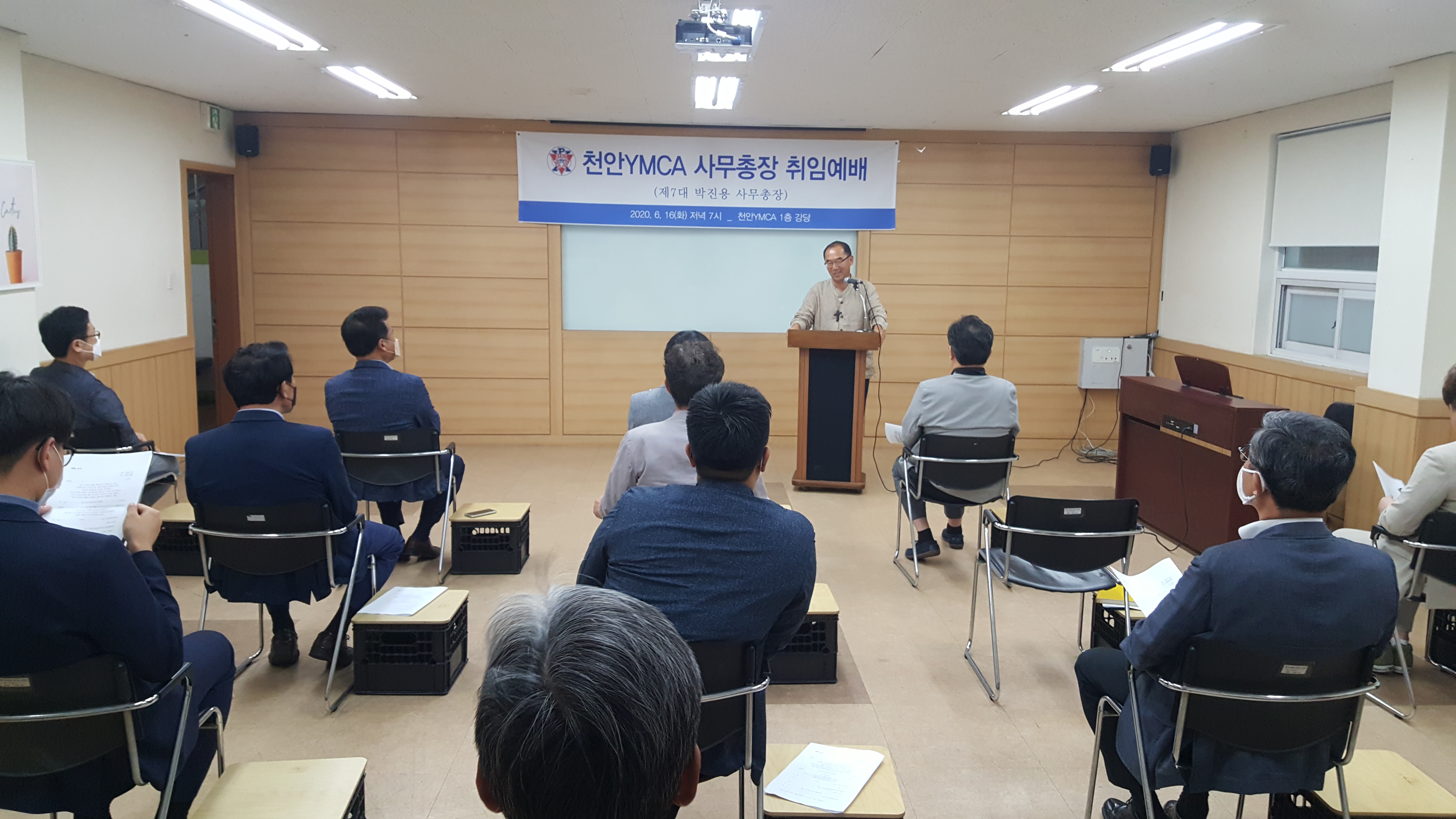 지난 6월16일 저녁 7시부터 본회 1층 강당에서 제7대 박진용 사무총장의 취임예배가 진행됐습니다. 코로나19로 이사님들과 사무국 실무자들만 모여 진행하기로 해 연락도 못 드렸는데 전임 전성환, 윤혜란 사무총장님과 회원님들께서 함께해주셨습니다. 고맙습니다~ 20여명의 이사, 회원님들과 조촐하지만 은혜롭게 예배를 마쳤습니다.