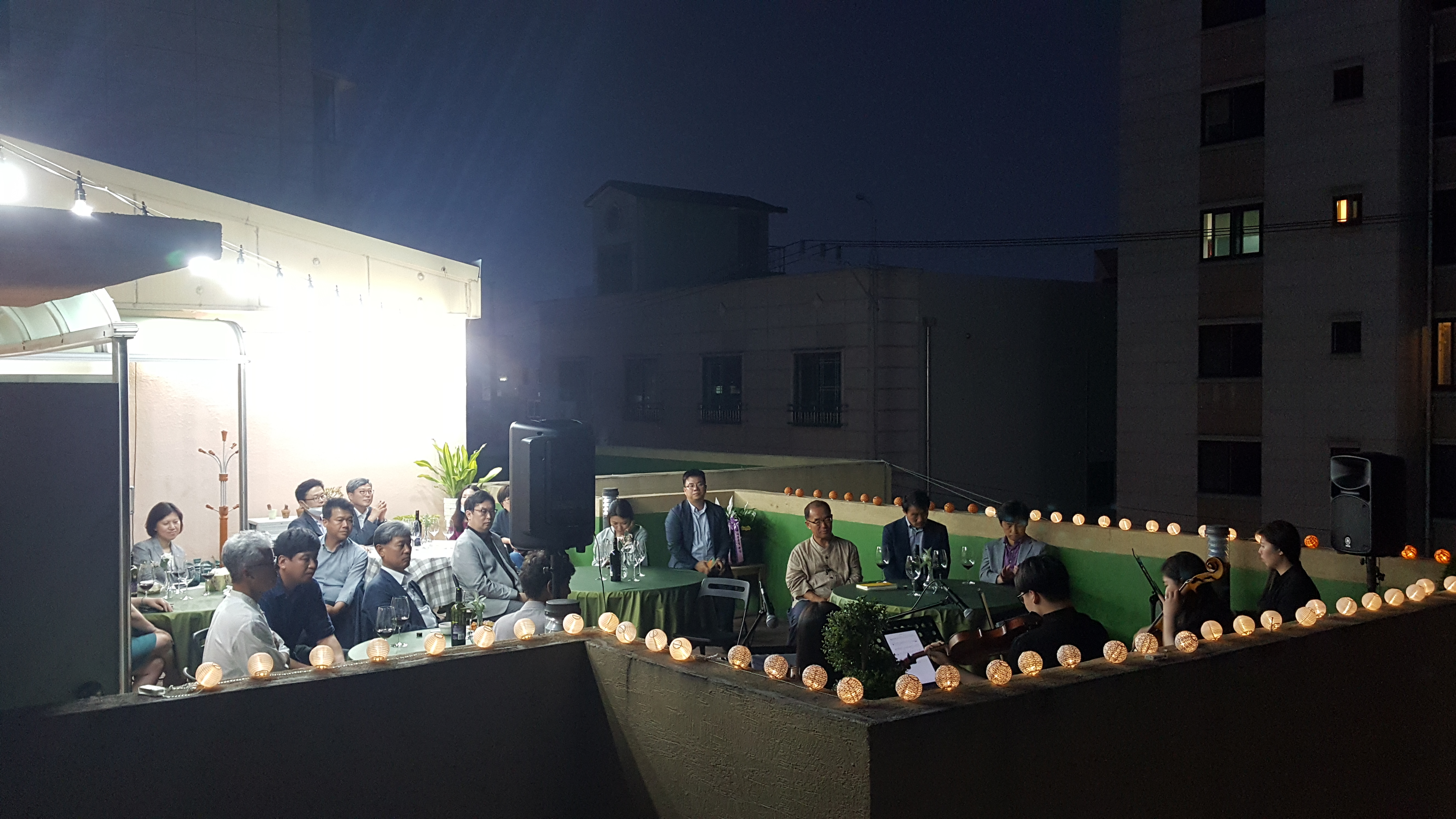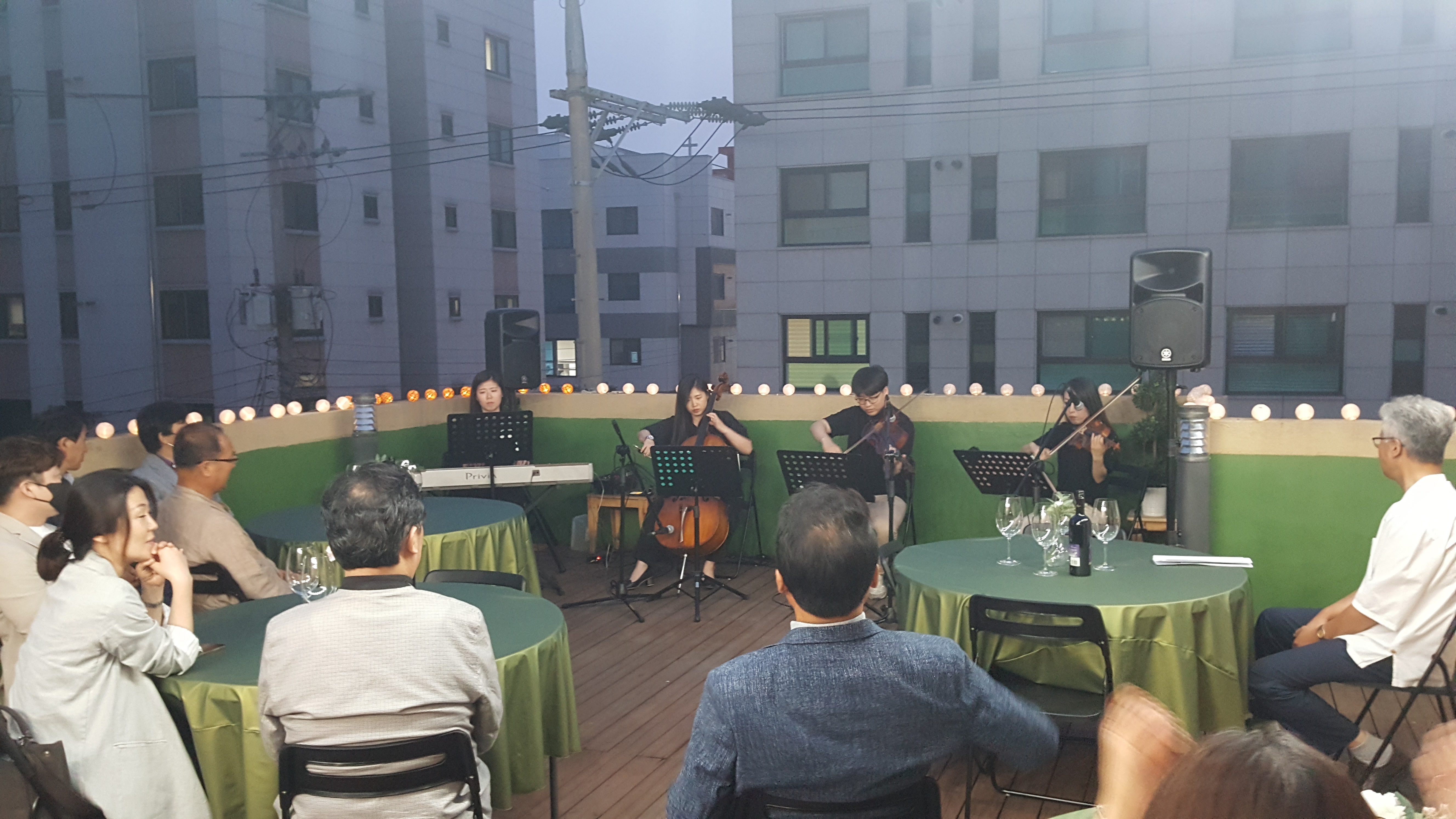 만찬에 앞서 성환 출신 4남매로 구성된 4중주단 ‘지콰르텟’의 작은 공연이 있었는데, 어스름한 초여름 저녁, 빼곡한 건물사이로 울리는 선율들 특히, ‘Gabriel's Oboe’의 멜로디는 코로나19의 시름을 잠시나마 잊게 했습니다.