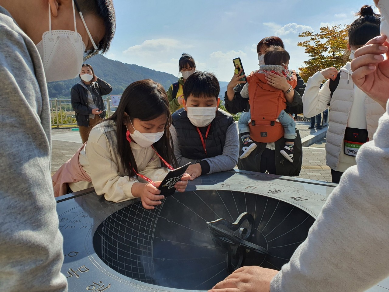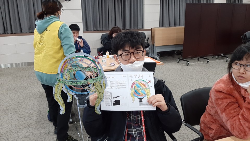 다음으로 홍대용과 혼천의 AR 체험 입니다. 직접 색칠한 혼천의가 핸드폰 속에서 3D로 구현되어 함께 사진 찍어보는 시간도 가졌습니다.