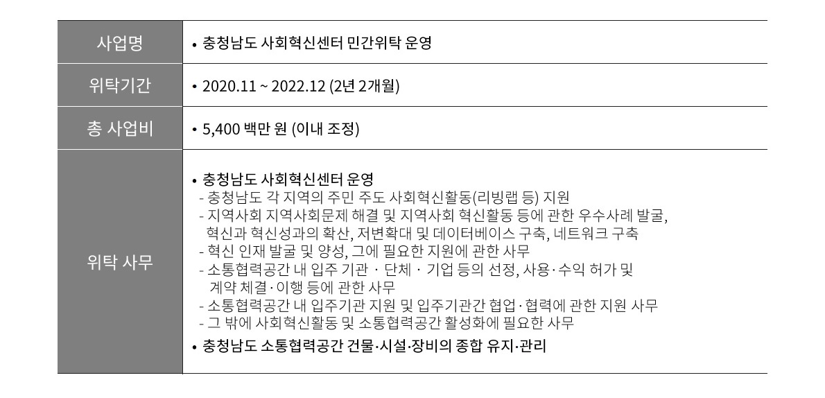 충청남도사회혁신센터 수탁운영자 선정 본문
