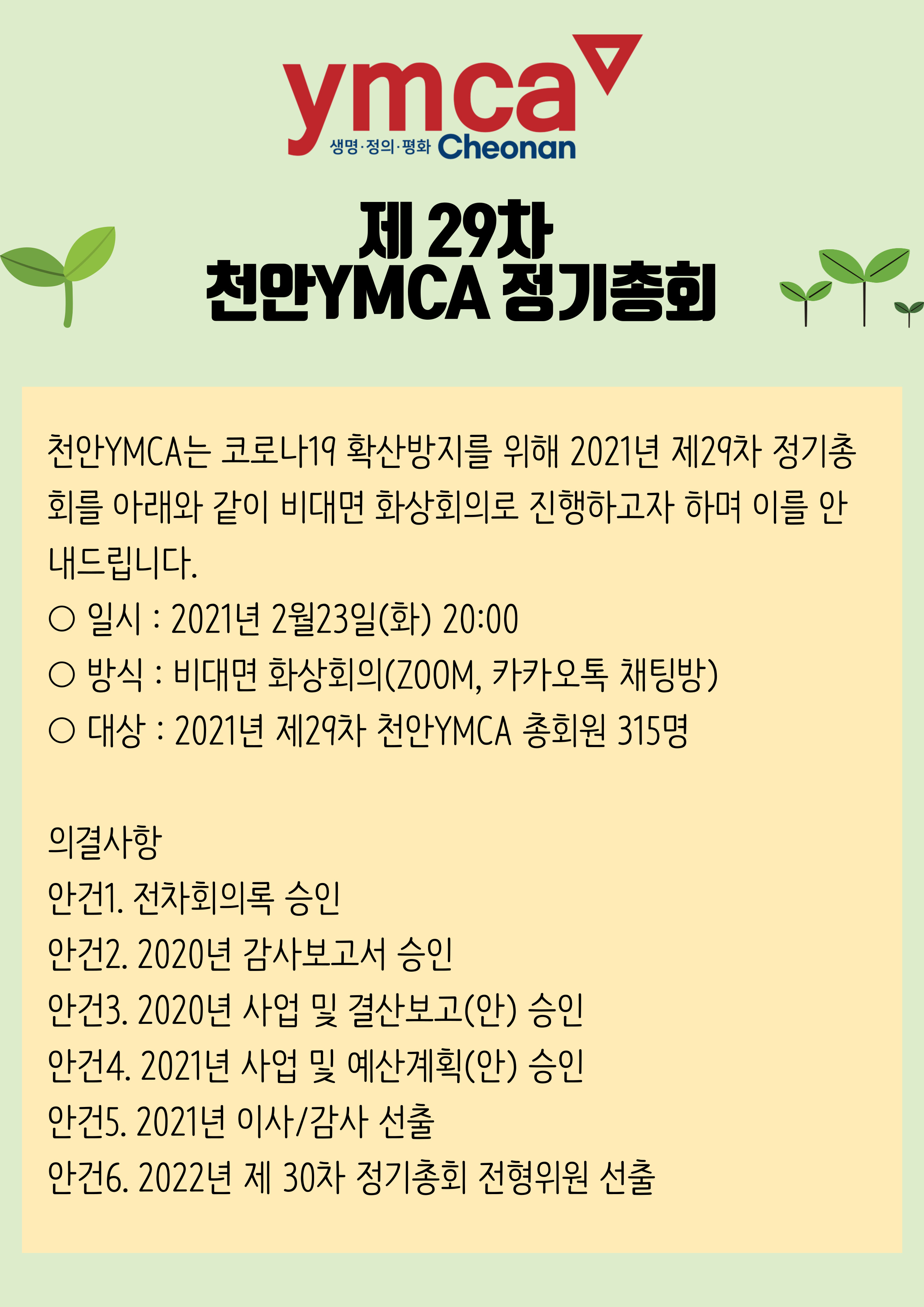 | 2020년 천안YMCA 제 28차 정기총회(총회자료집/온라인결의 링크) (0) | 2020.04.09 |