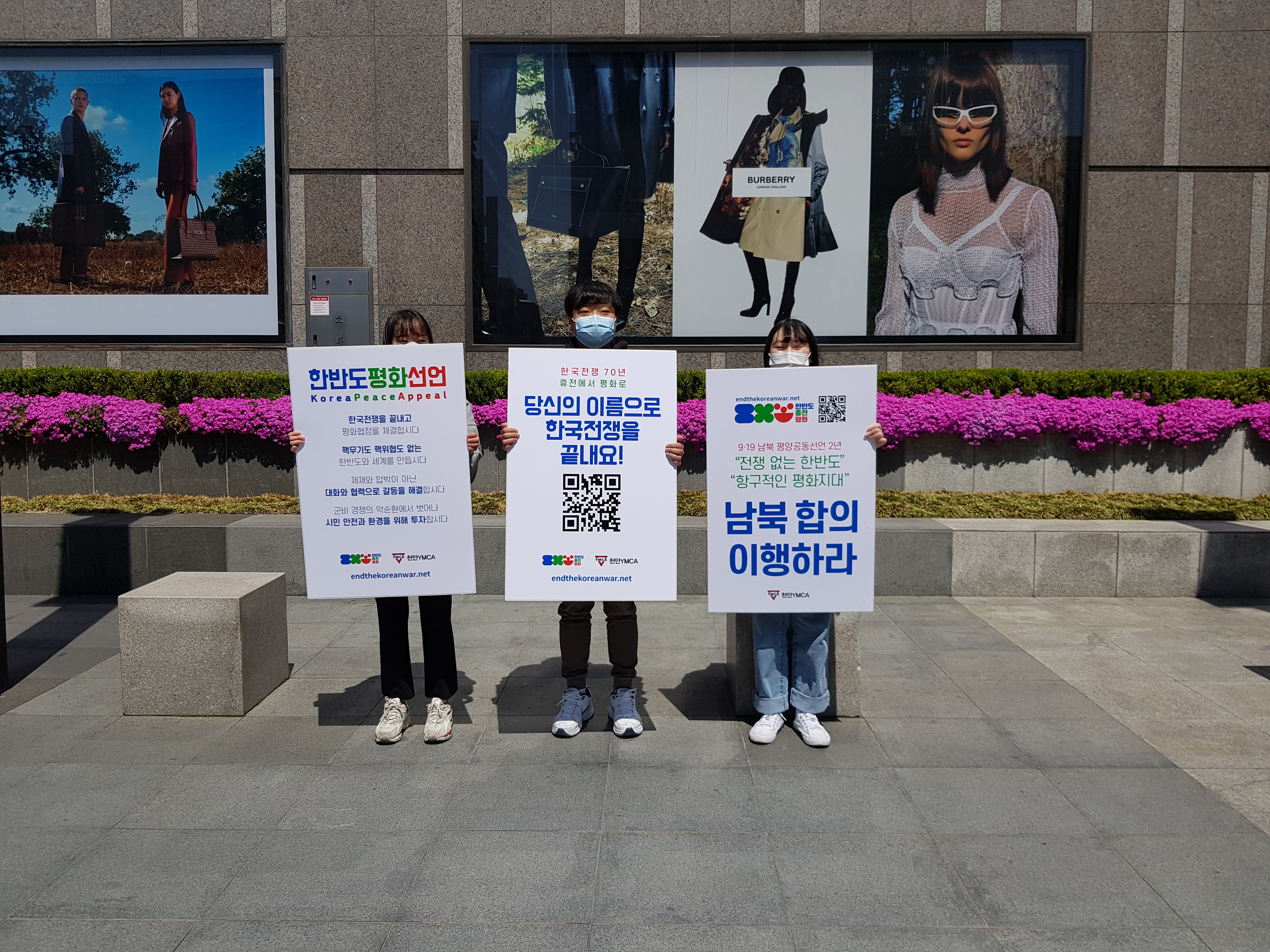지난 4월 9일 첫 번째 캠페인을 진행했으며 정전협정 체결 70년이 되는 2023년까지, 매월 둘째주 수요일 12시 천안YMCA에서 진행하는 <한반도 종전 평화 캠페인>에 참여합니다.