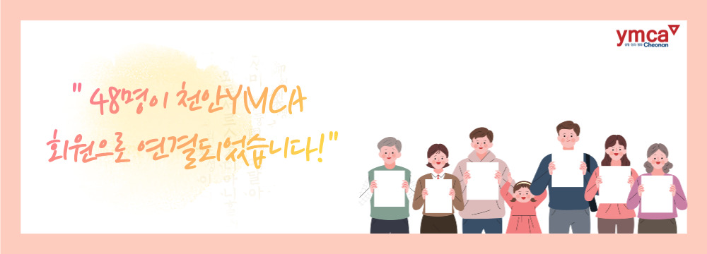 매월 천안YMCA에 후원금을 보내주시는 정기회원으로 가입하신 분은 총 48명입니다.