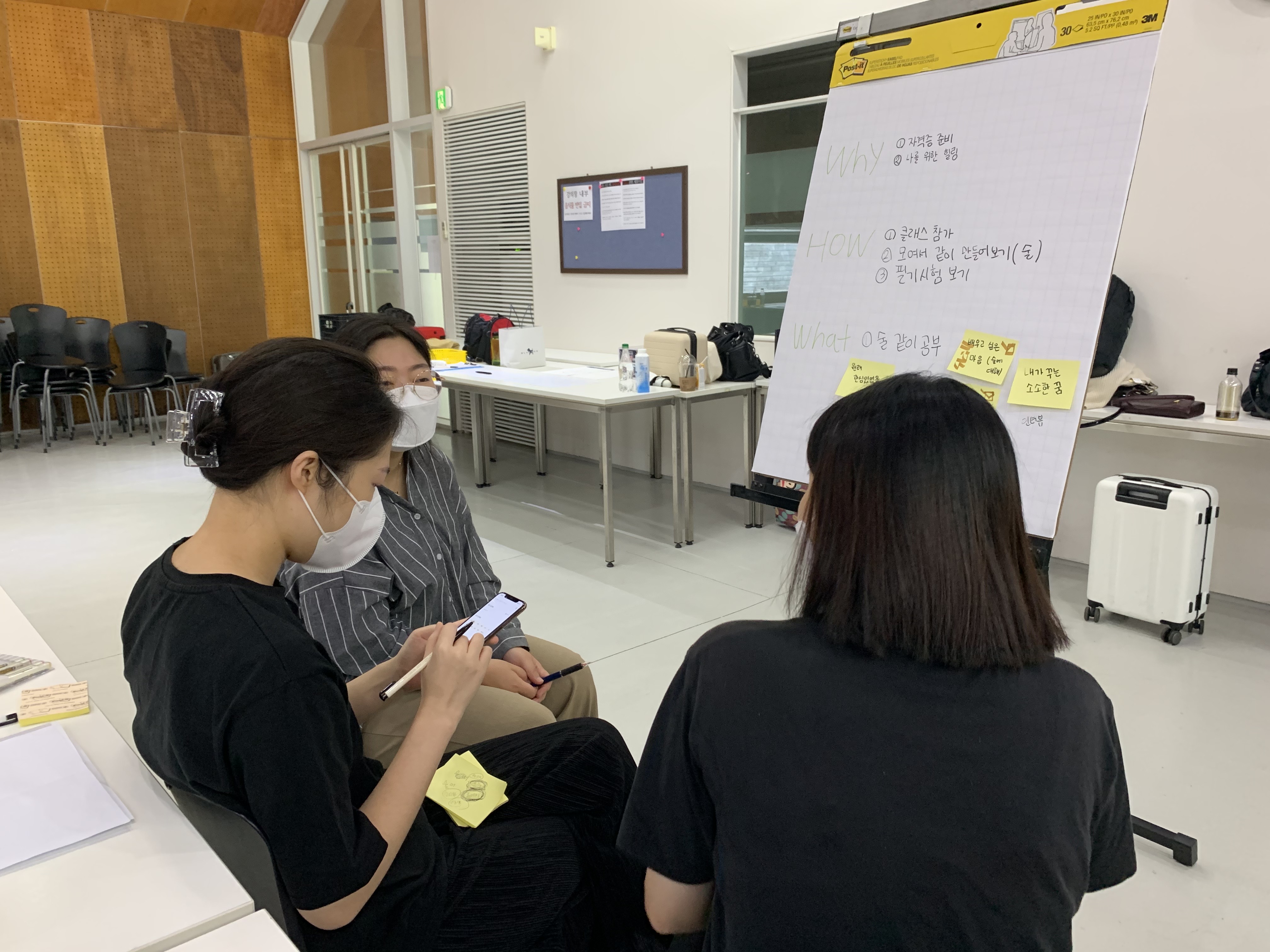 마지막 프로그램으로 '내:일을 찾아가기'가 진행이 되었습니다. 이 프로그램은 NGF연구소 나는의 대표이신 '박현미 대표'님께서 진행해주셨으며, 2박3일의 워크샵이 끝나고 팀을 이루어서 프로젝트를 진행하게 되는데 프로젝트를 진행하기에 앞서 지금까지 참가자들과 이야기했던 '내가 하고 싶은 것', '나는 무엇을 할 수 있을까?'라는 질문에 대한 다양한 생각을 바탕으로 프로젝트 팀을 구성하고 어떤 프로젝트를 할 건지 정하고 직접 기획까지 해보는 활동입니다.