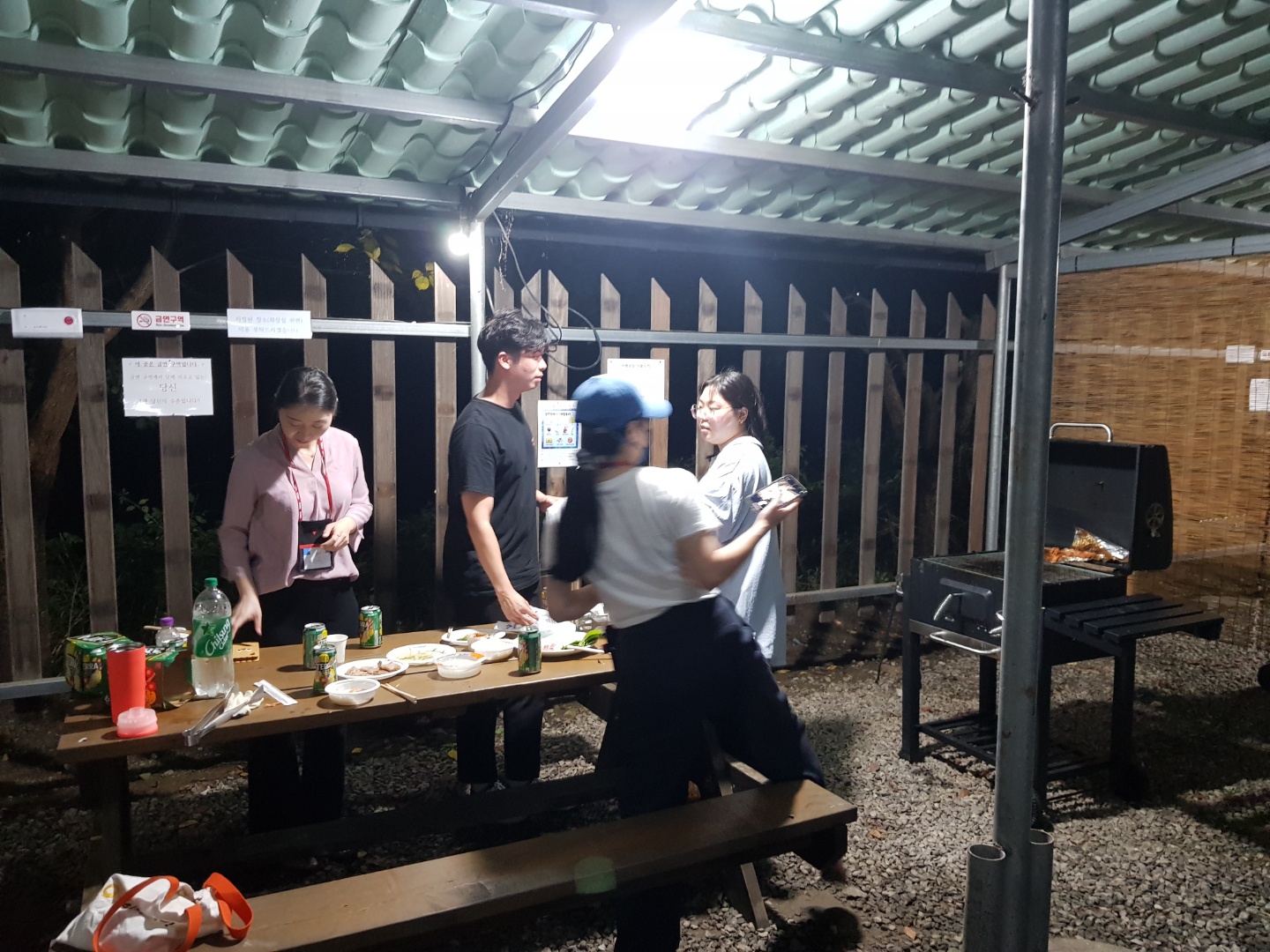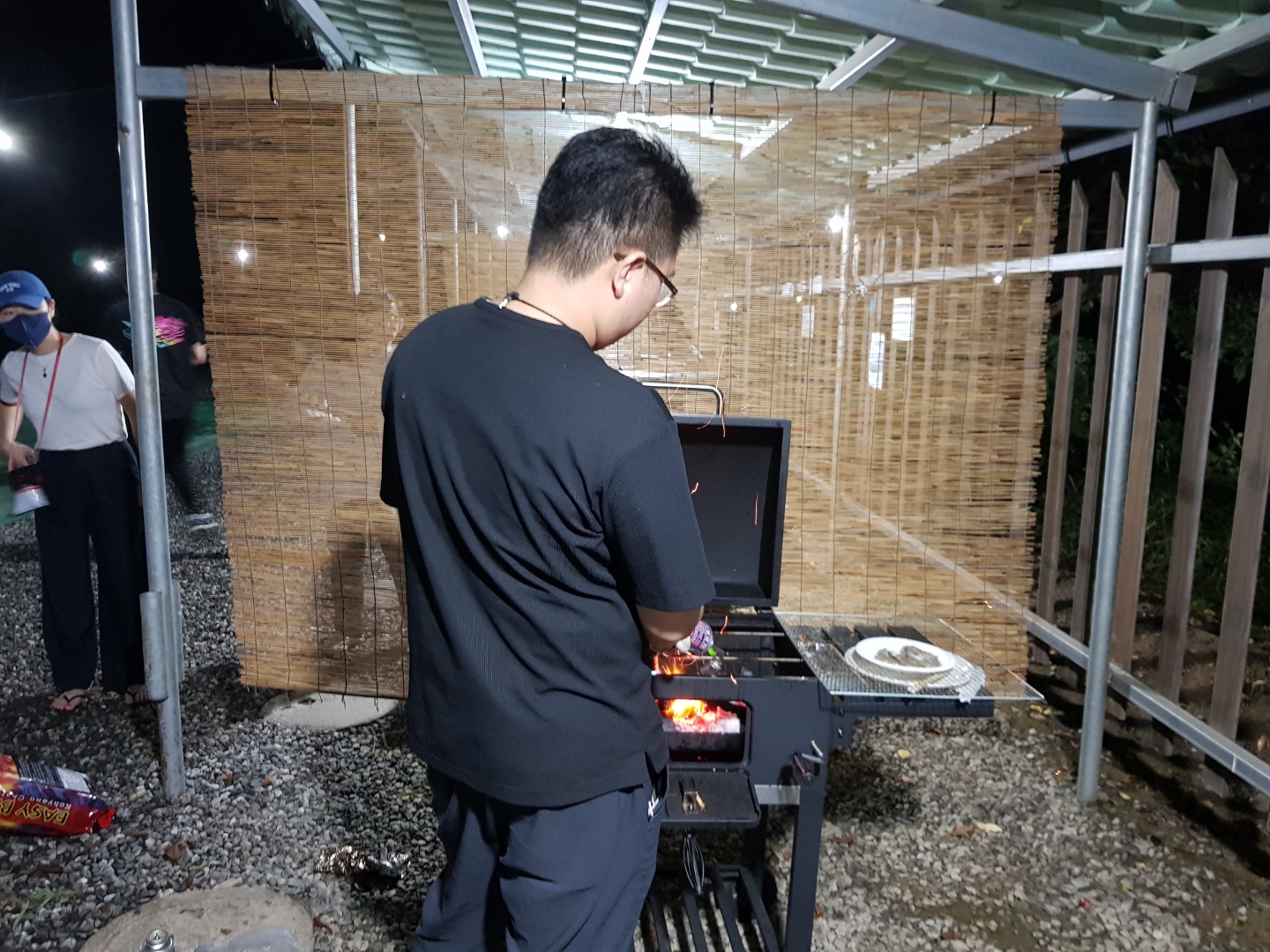 2일차 저녁에는 1일차와는 다르게 야외에서 같이 바베큐를 즐기며 서로의 이야기를 하는 시간을 가졌습니다. 코로나19 방역수칙을 준수하며 4인1조로 거리두기를 준수하여 프로그램을 진행했습니다. 2일동안 열심히 실내에서 활동하느라 고생하신 참가자분들에게 바베큐를 제공하고 야외에서 자유롭게 식사하는 방식으로 진행했습니다.