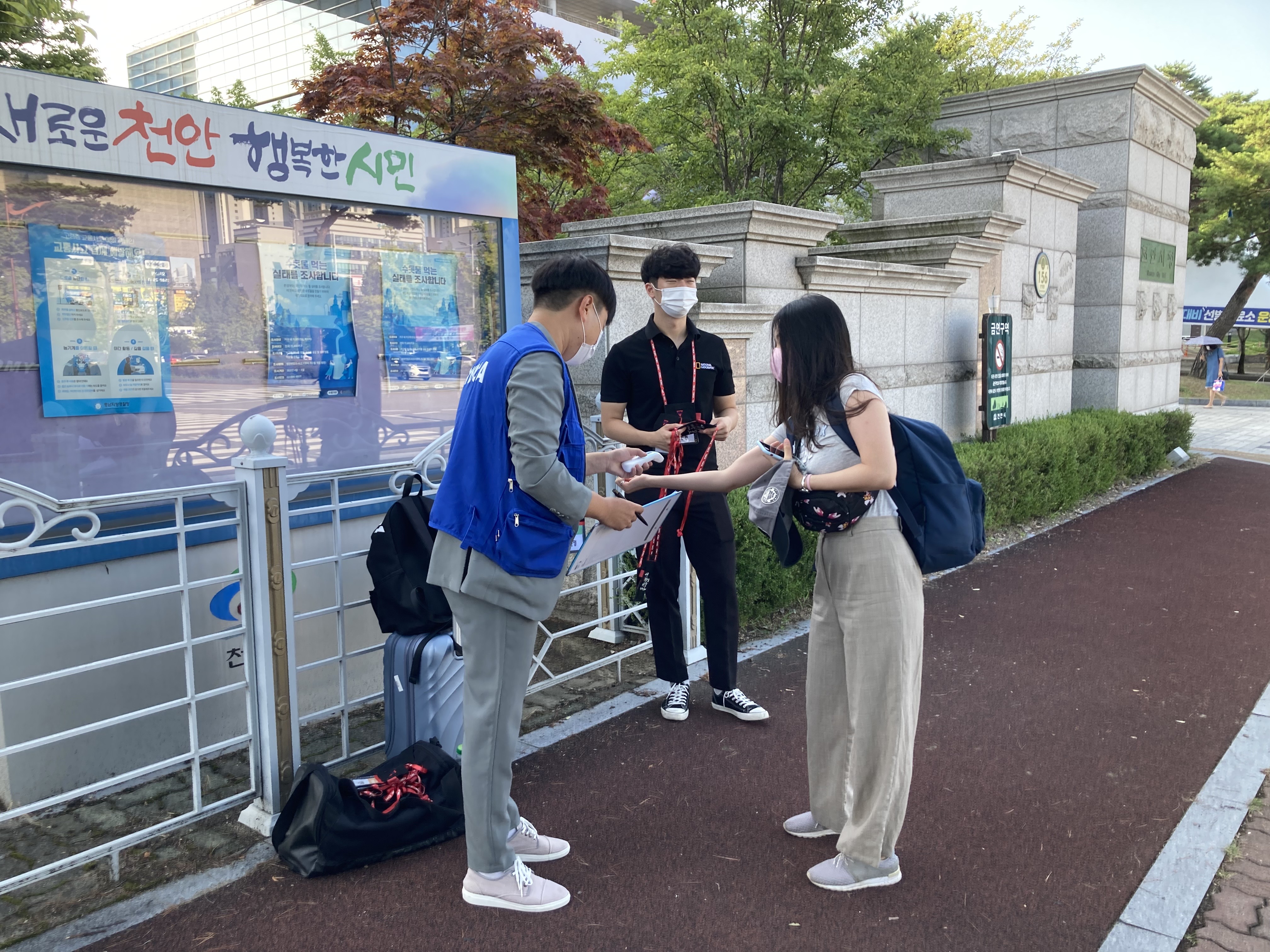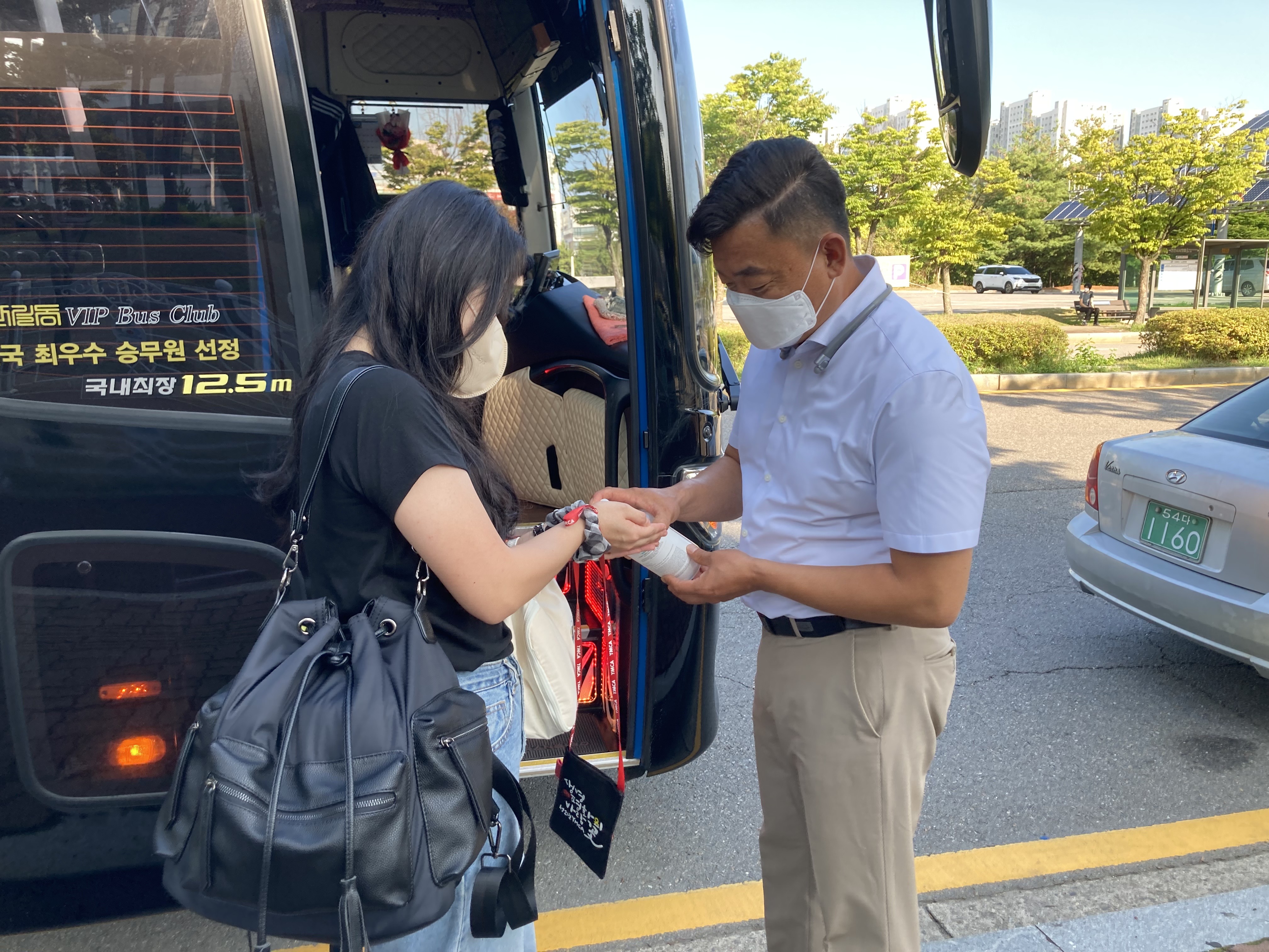 행사를 시작하기에 앞서 코로나19 방역수칙을 준수하기 위해 모든 참가자들이 마스크를 쓰고 행사를 참여했으며, 사전에 온도체크를 진행했습니다. 그리고 공주 한국문화연수원까지 이동하는 버스 내부의 방역도 진행하여