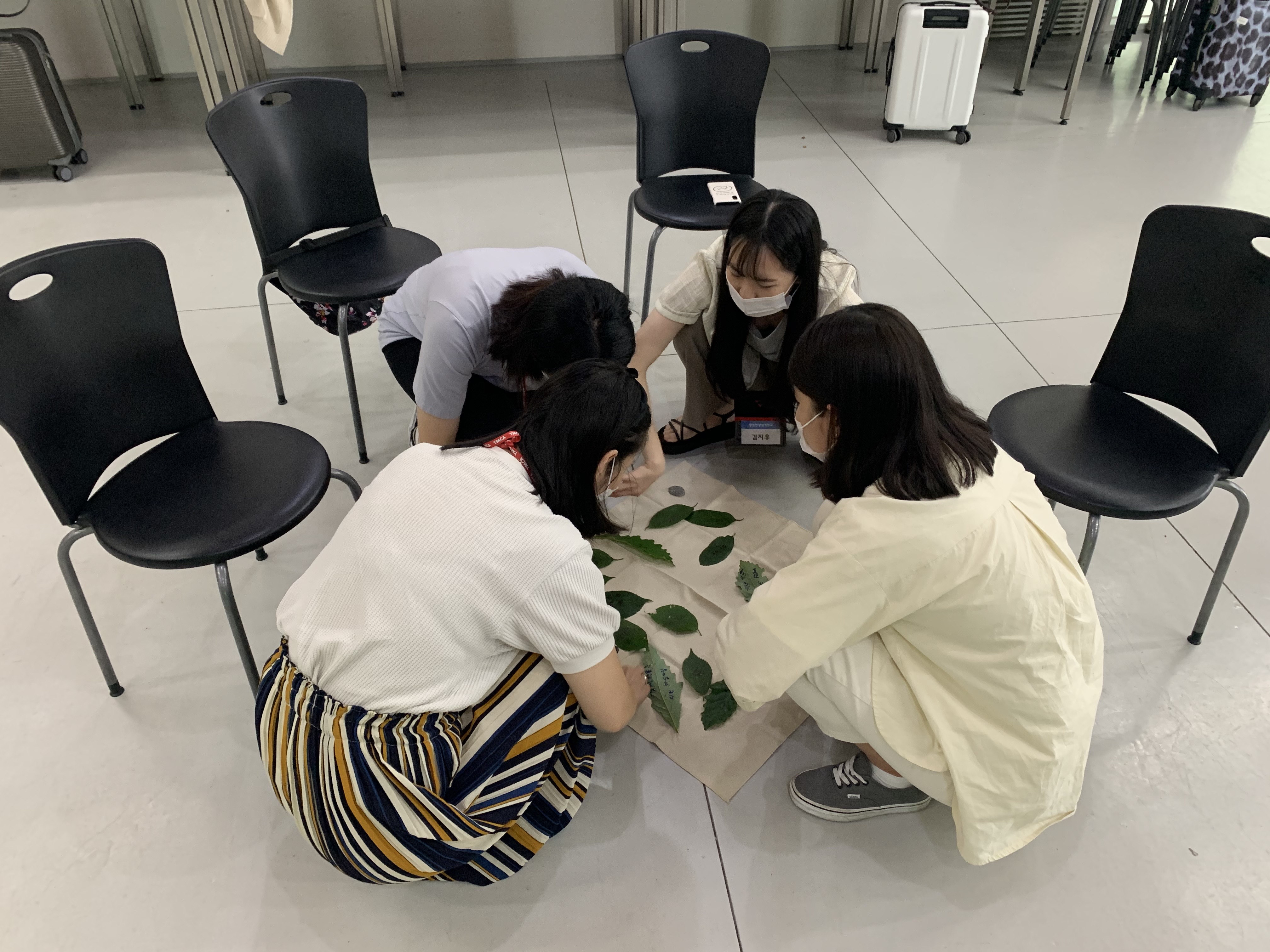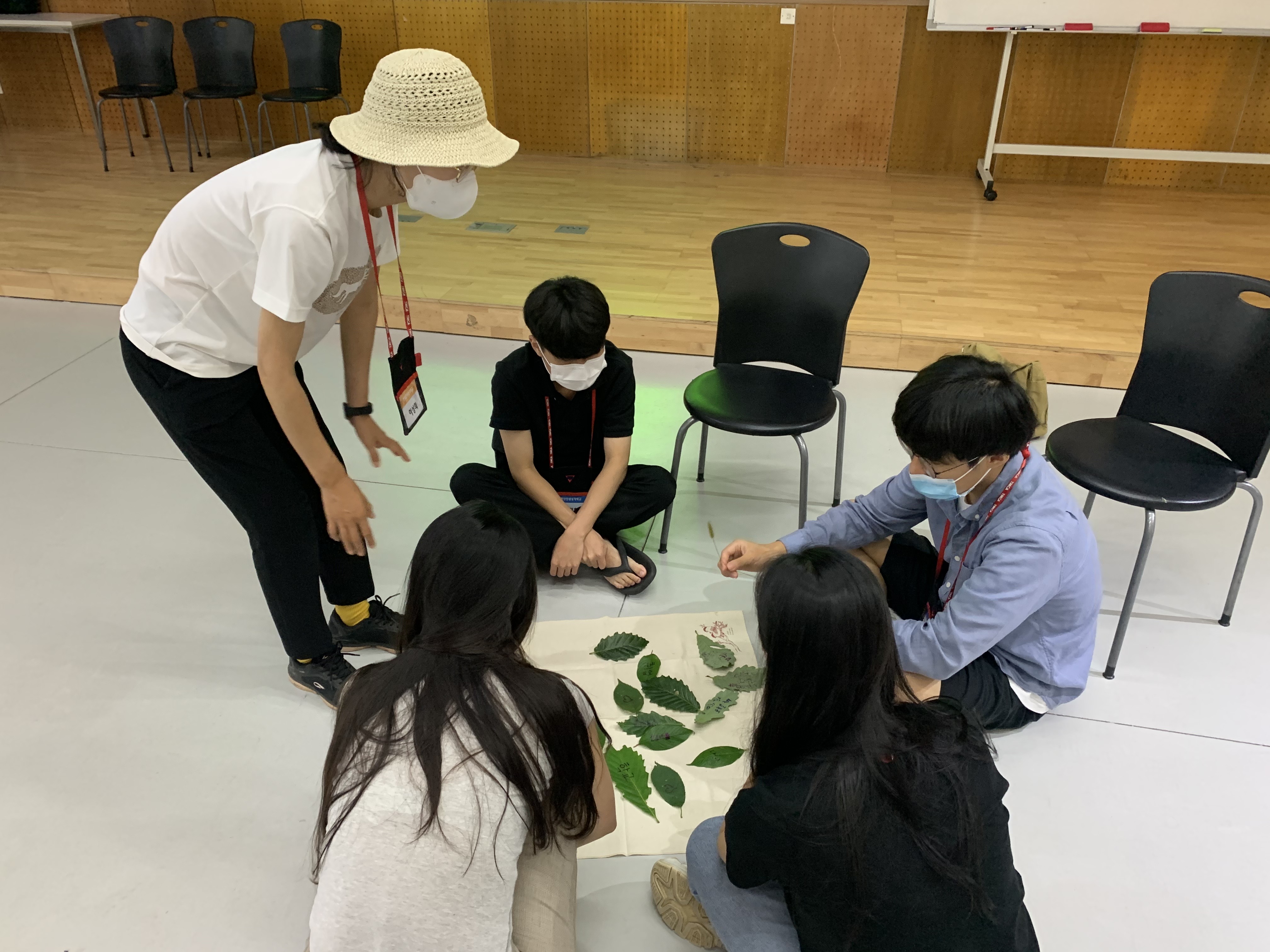 그리고 4명의 참가자들이 한 팀이 되어 각자를 소개하는 나뭇잎을 모아 이를 통해 하나의 문장을 만들어보고, 다른 팀들과 함께 공유하는 시간도 가졌습니다. 이번 활동을 통해 서로 어색한 분위기는 깨지고 서로 많은 대화도 나누고 함께 잘 어울리게 되었습니다. 본격적인 프로그램에 앞서 서로를 간단하게나마 알아볼 수 있는 좋은 시간이였습니다.
