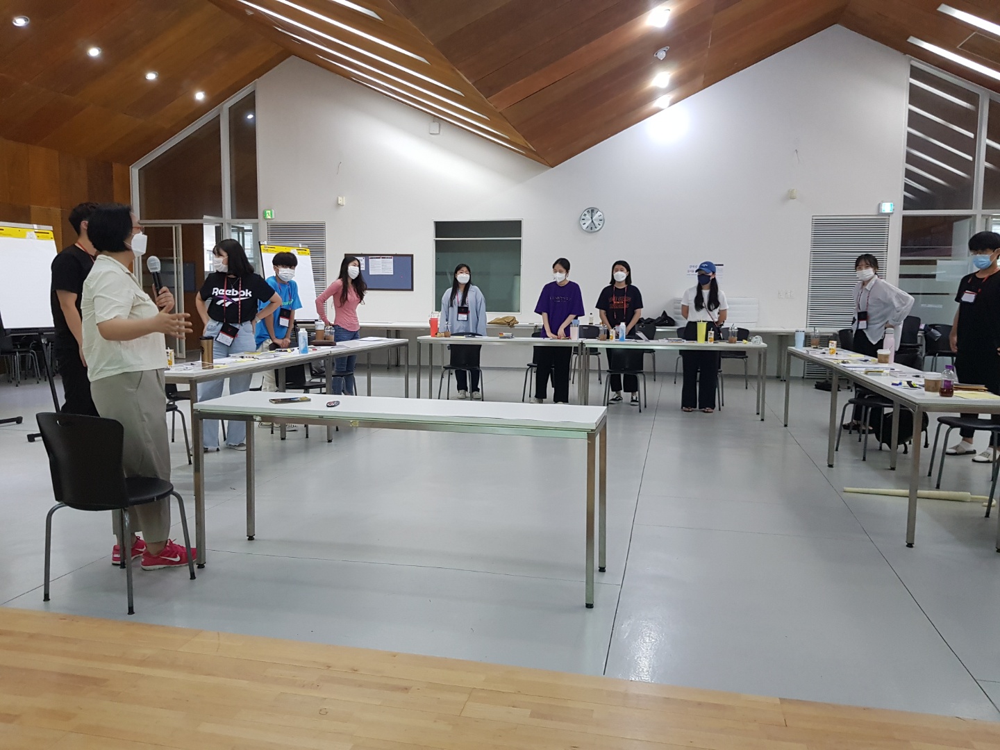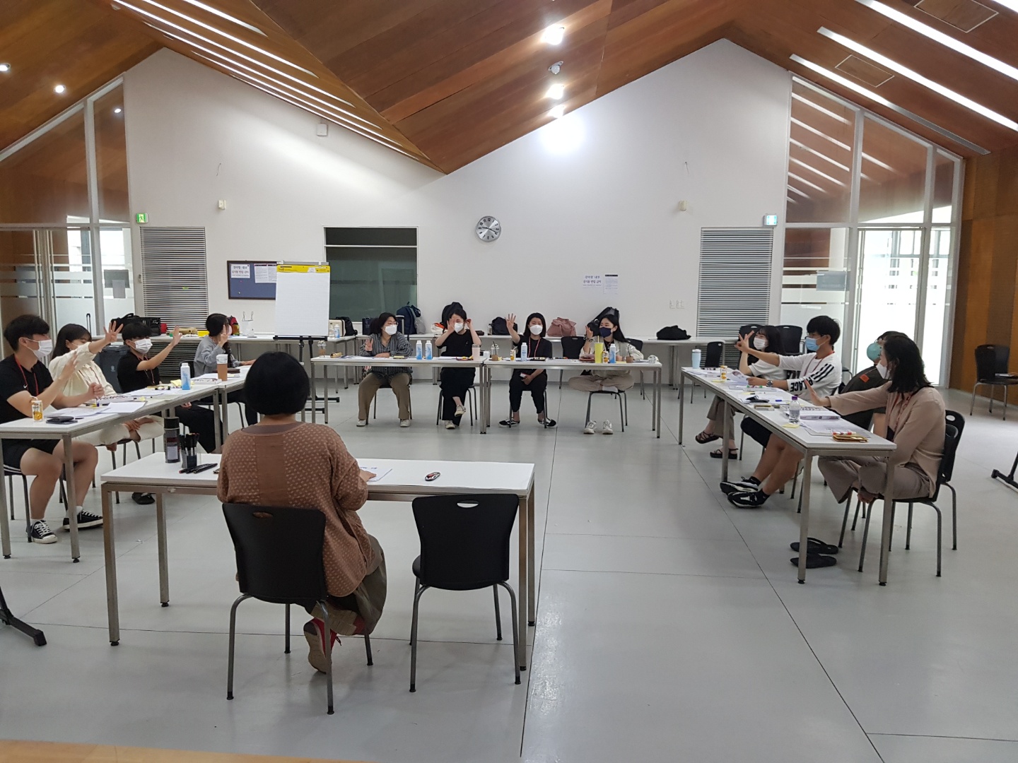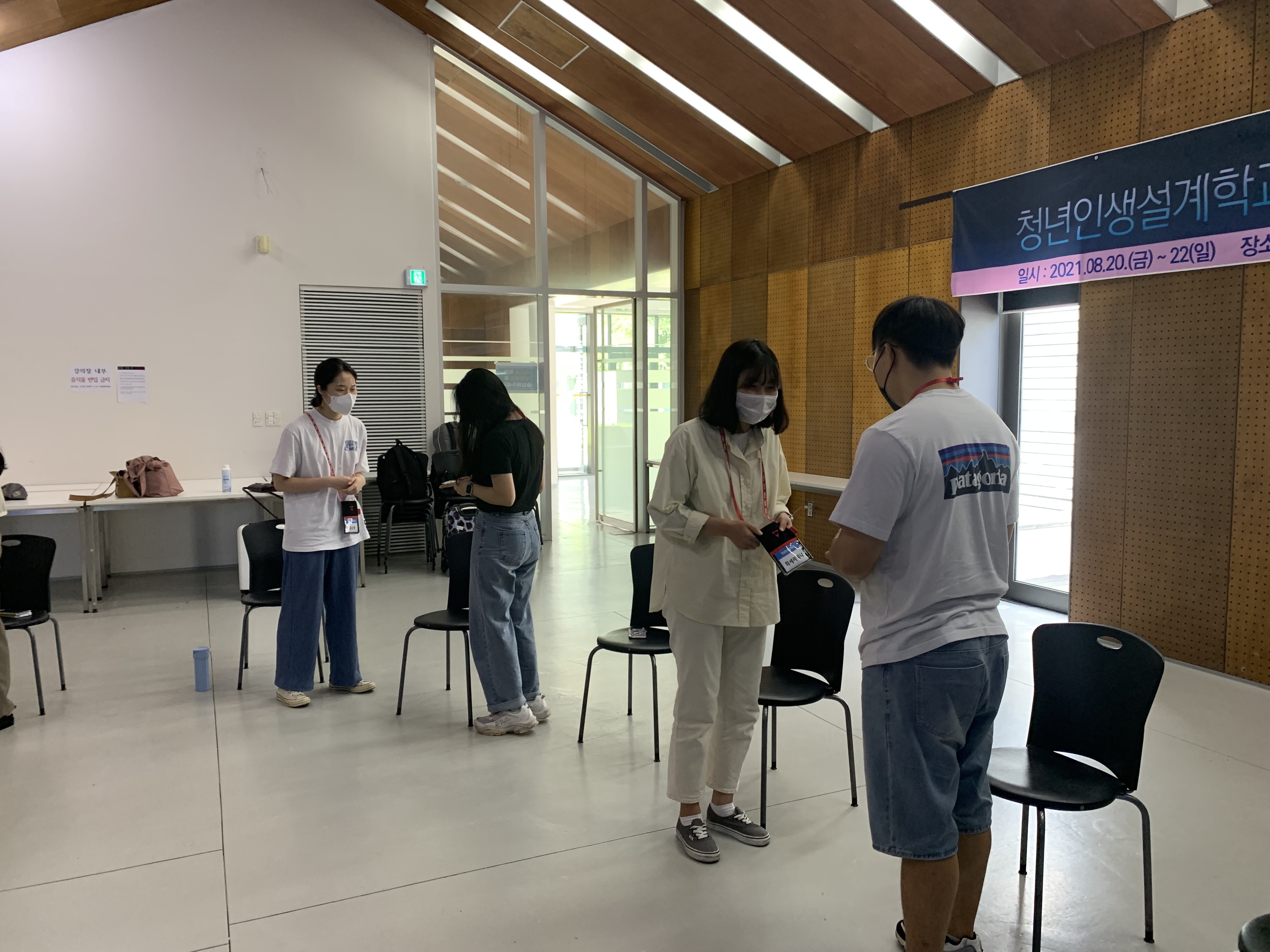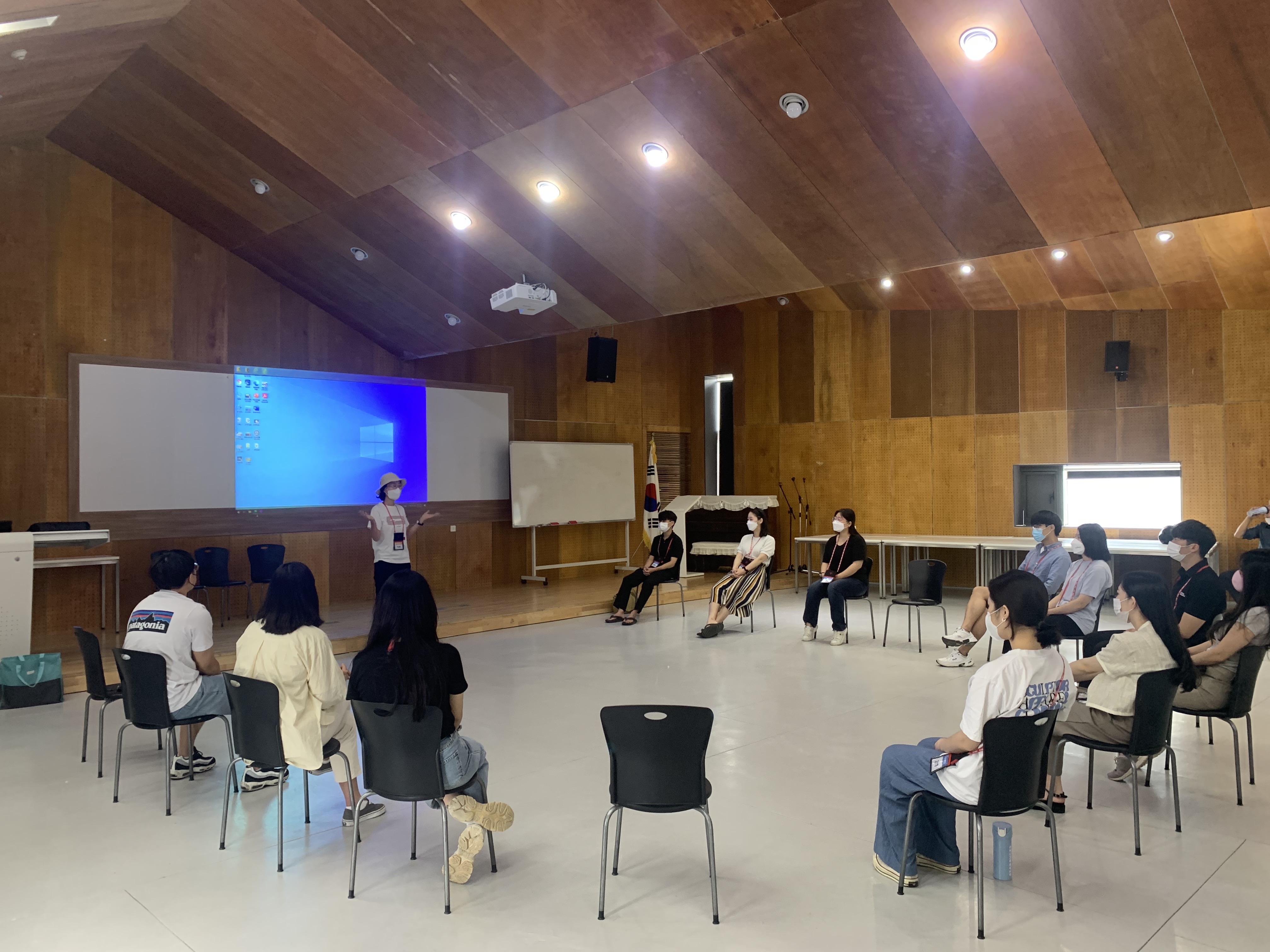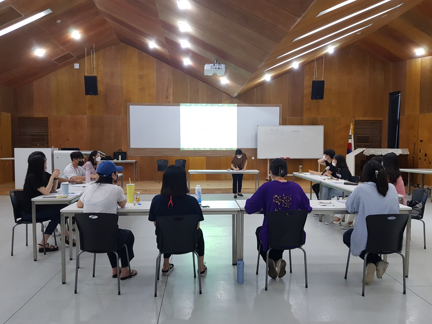 공주 한국문화연수원에 도착 후, 워크샵이 진행되는 대강의실로 이동했습니다. 코로나19로 인해 100명이상이 수용 가능한 넓은 강의실로 대여를 했습니다:)