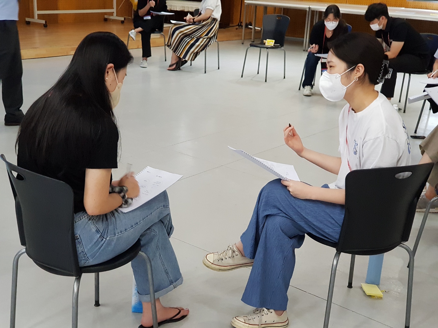 자신에 대한 탐색을 진행하고, 2인 1조로 구성하여 자신에 대해서 이야기 해보고 서로의 이야기를 공유하여 각자의 생각과 고민에 대해서 진지하게 이야기 해보는 시간도 가졌습니다.